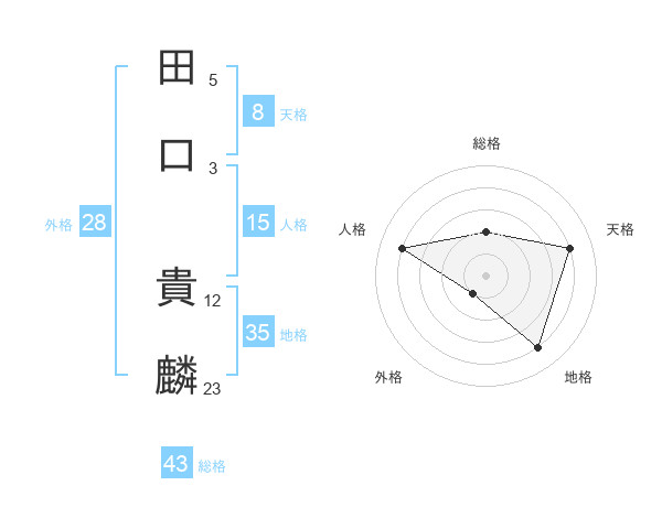 田口 貴麟さんの総格は43画の2点!