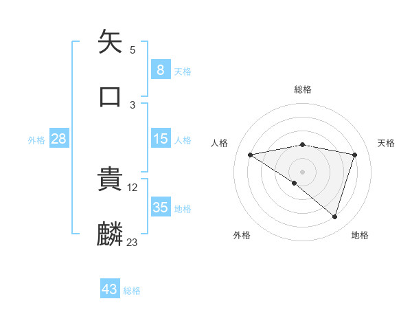 矢口 貴麟さんの天格は8画の4点!