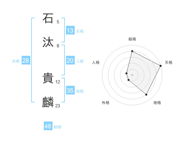 石汰 貴麟さんを姓名の画数から五運を鑑定