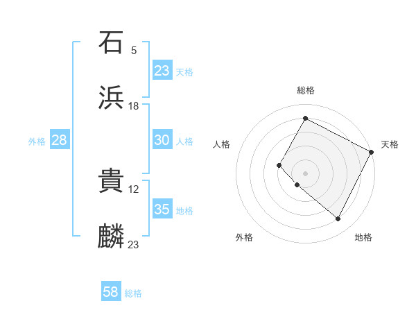 石浜 貴麟さんを姓名の画数から五運を鑑定