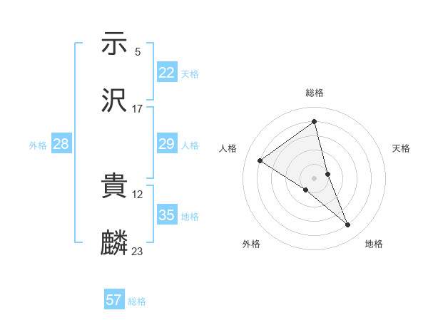 示沢 貴麟さんの総格は57画の4点!