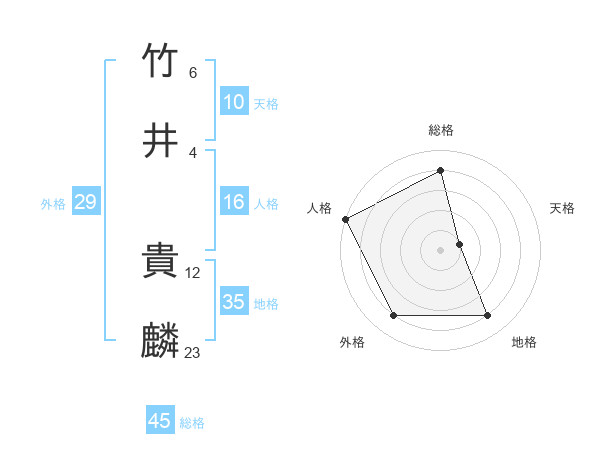 竹井 貴麟さんの総格は45画の4点!