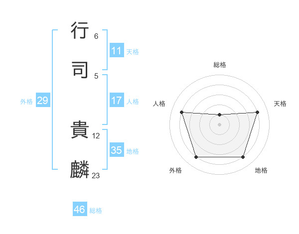 行司 貴麟さんを姓名の画数から五運を鑑定