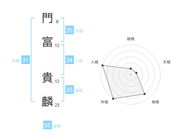 門富 貴麟さんの総格は55画の1点!