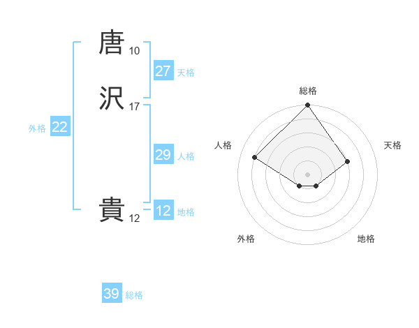 唐沢 貴さんを姓名の画数から五運を鑑定