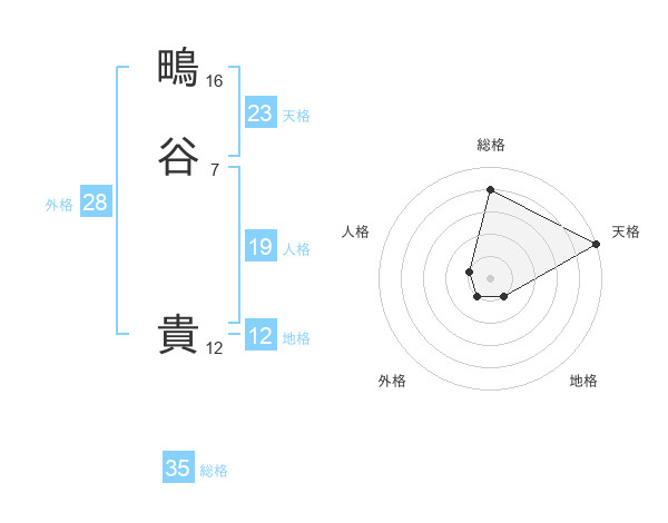 鴫谷 貴さんの総格は35画の4点!