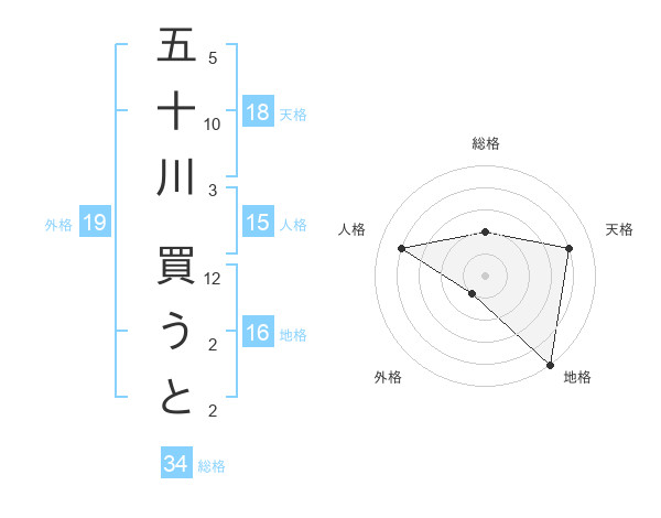 五十川 買うとさんの総格は34画の2点!