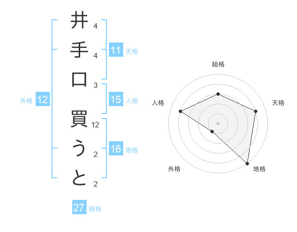 井手口 買うとさんを姓名の画数から五運を鑑定
