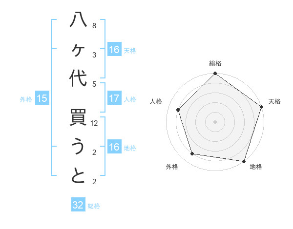 八ヶ代 買うとさんの総格は32画の5点
