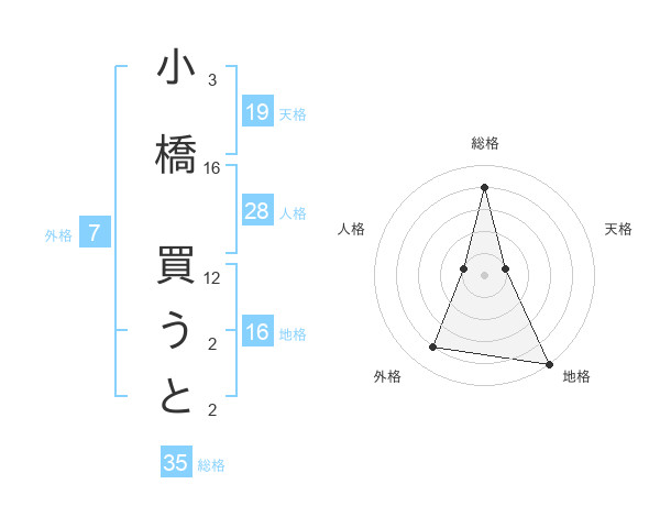 小橋 買うとさんを姓名の画数から五運を鑑定
