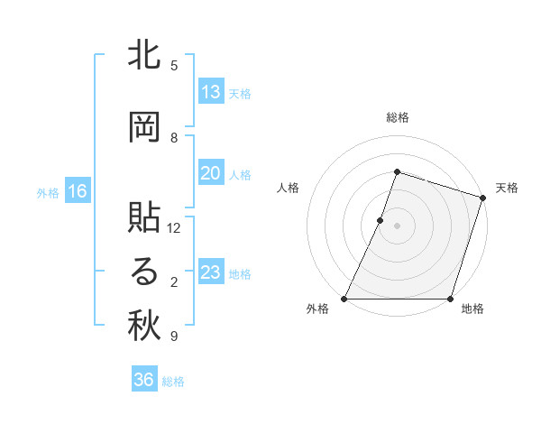 北岡 貼る秋さんを姓名の画数から五運を鑑定