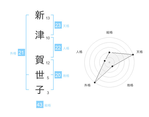 新津 賀世子さんの天格は23画の5点!