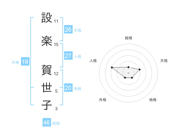 設楽 賀世子さんを姓名の画数から五運を鑑定