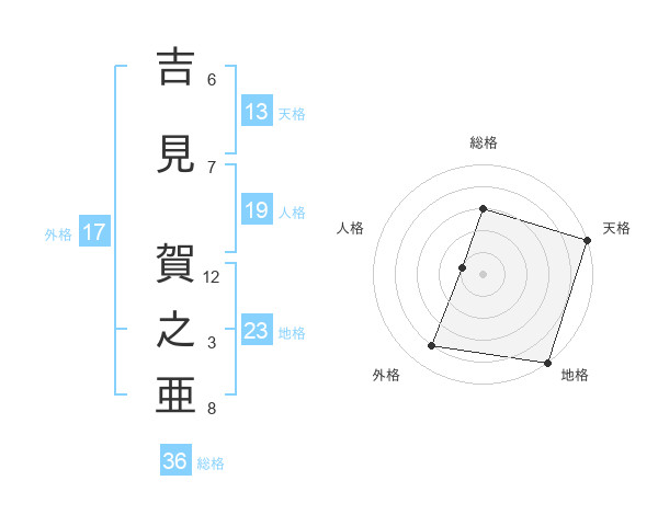 吉見 賀之亜さんを姓名の画数から五運を鑑定