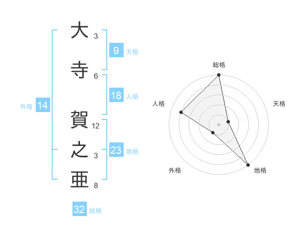 大寺 賀之亜さんを姓名の画数から五運を鑑定
