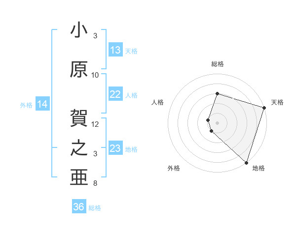 小原 賀之亜さんの天格は13画の5点!
