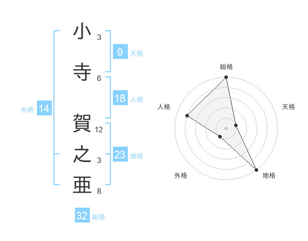 小寺 賀之亜さんを姓名の画数から五運を鑑定