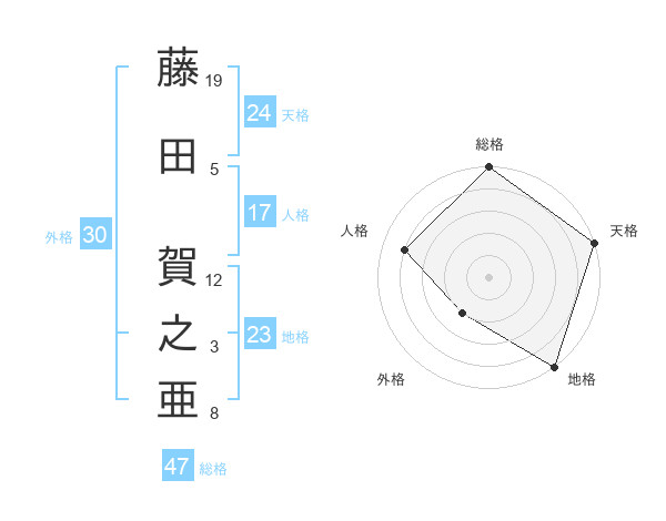 藤田 賀之亜さんを姓名の画数から五運を鑑定
