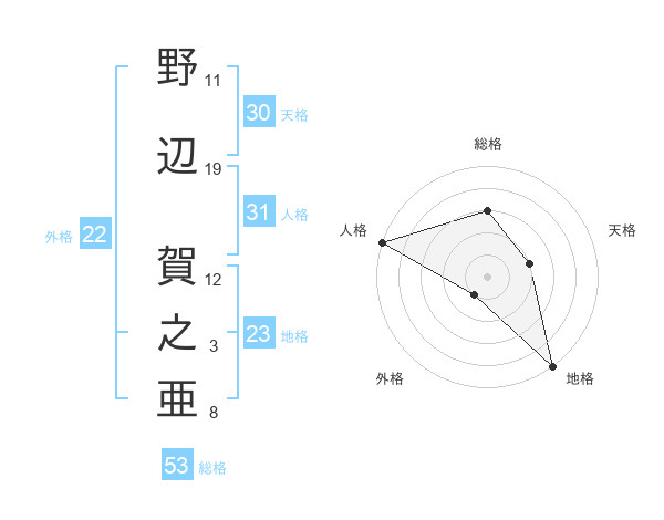 野辺 賀之亜さんを姓名の画数から五運を鑑定
