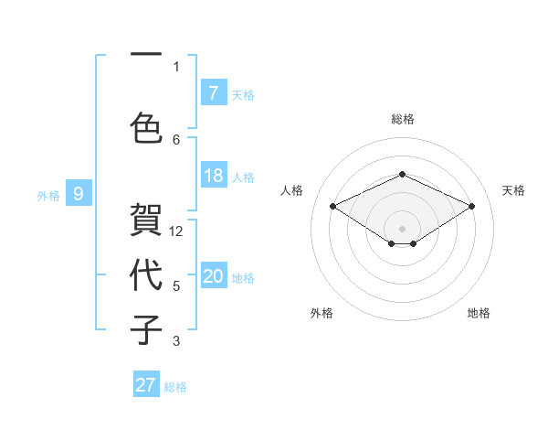 一色 賀代子さんを姓名の画数から五運を鑑定