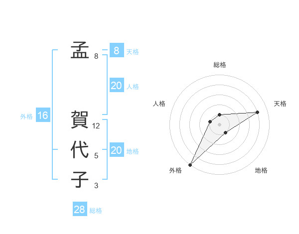 孟 賀代子さんの総格は28画の1点!