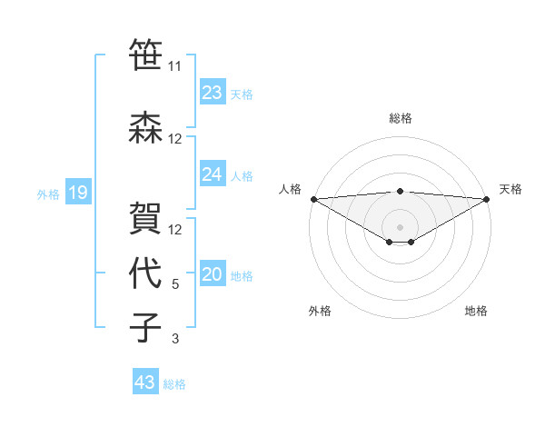 笹森 賀代子さんを姓名の画数から五運を鑑定