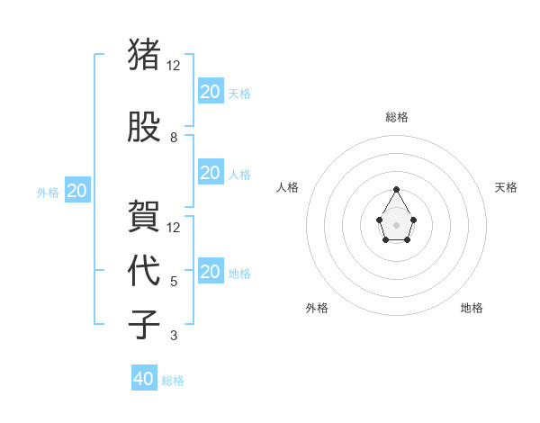 猪股 賀代子さんを姓名の画数から五運を鑑定