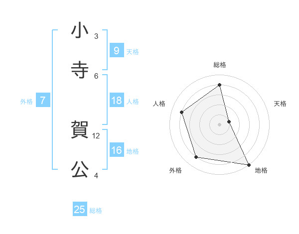 小寺 賀公さんを姓名の画数から五運を鑑定