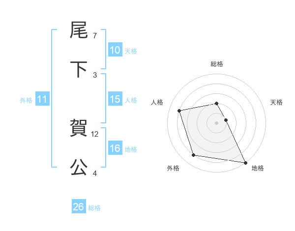 尾下 賀公さんの総格は26画の2点!