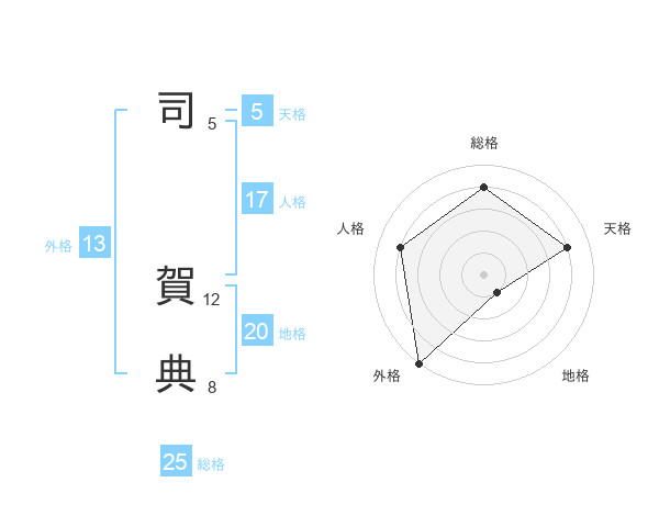 司 賀典さんの外格は13画の5点!