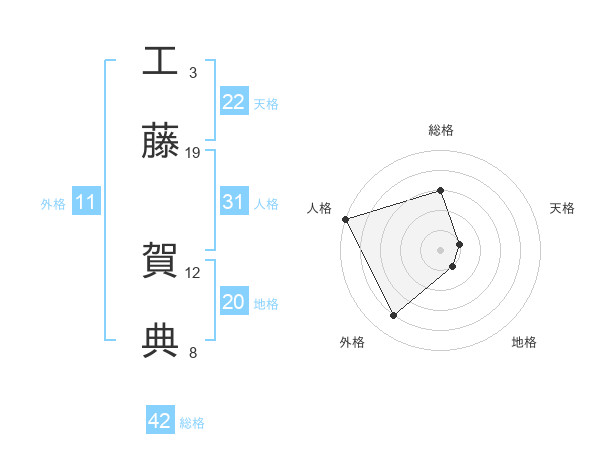 工藤 賀典さんの総格は42画の3点!