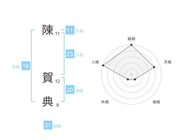 陳 賀典さんの総格は31画の5点!