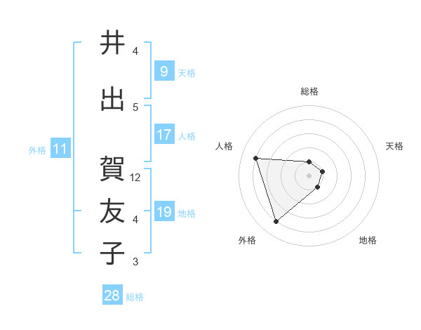 井出 賀友子さんを姓名の画数から五運を鑑定