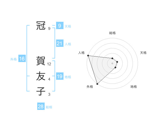 冠 賀友子さんを姓名の画数から五運を鑑定