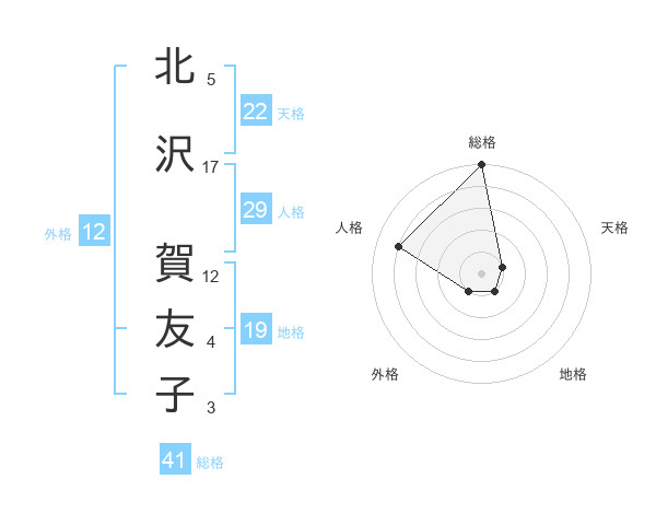 北沢 賀友子さんを姓名の画数から五運を鑑定