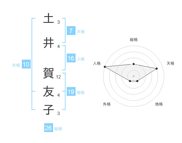 土井 賀友子さんを姓名の画数から五運を鑑定