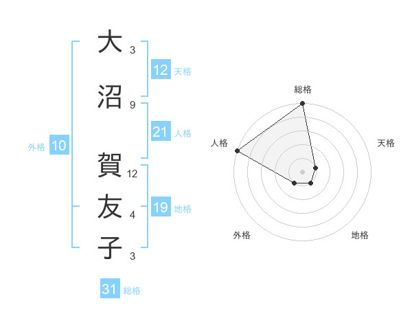 大沼 賀友子さんの総格は31画の5点!