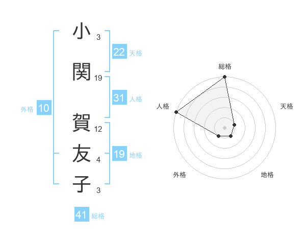 小関 賀友子さんを姓名の画数から五運を鑑定