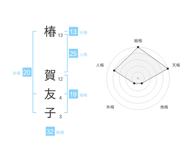 椿 賀友子さんを姓名の画数から五運を鑑定