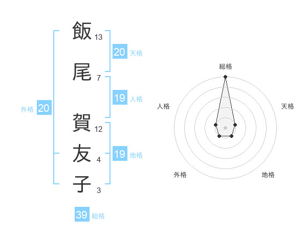 飯尾 賀友子さんの総格は39画の5点!
