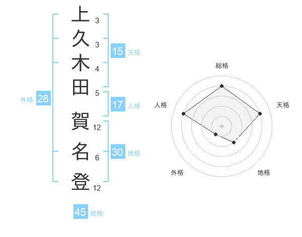 上久木田 賀名登さんを姓名の画数から五運を鑑定