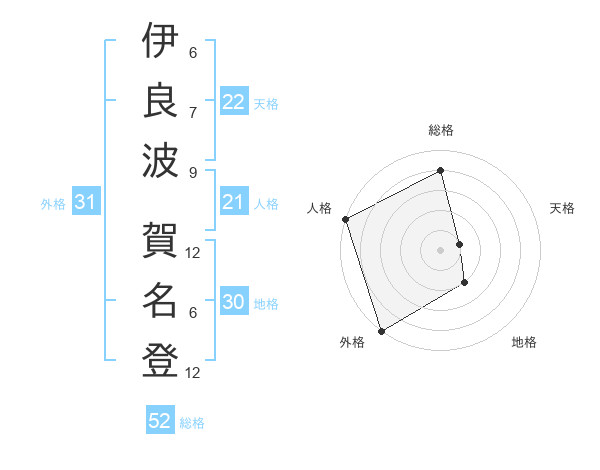 伊良波 賀名登さんを姓名の画数から五運を鑑定