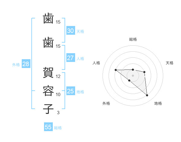 歯歯 賀容子さんを姓名の画数から五運を鑑定