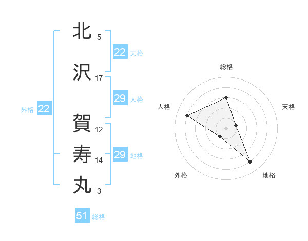 北沢 賀寿丸さんを姓名の画数から五運を鑑定