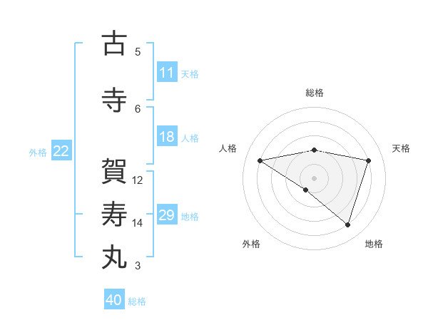 古寺 賀寿丸さんの地格は29画の4点!