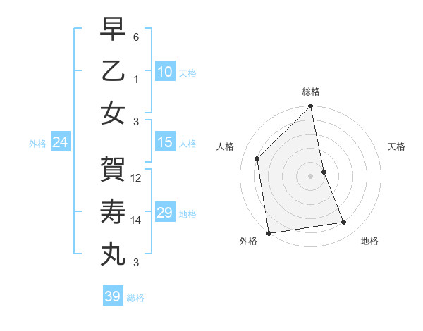 早乙女 賀寿丸さんの総格は39画の5点!
