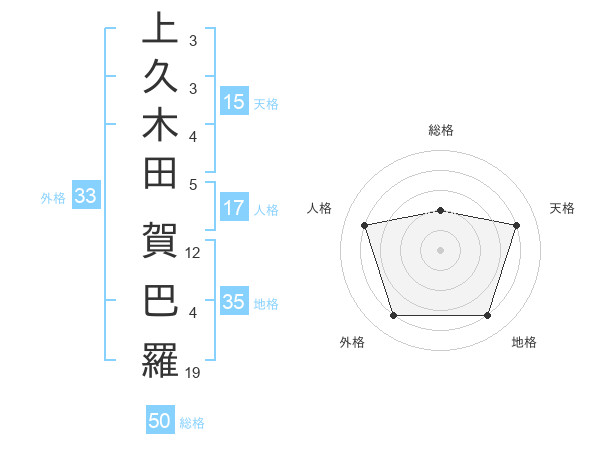 上久木田 賀巴羅さんを姓名の画数から五運を鑑定