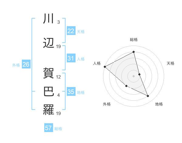 川辺 賀巴羅さんを姓名の画数から五運を鑑定