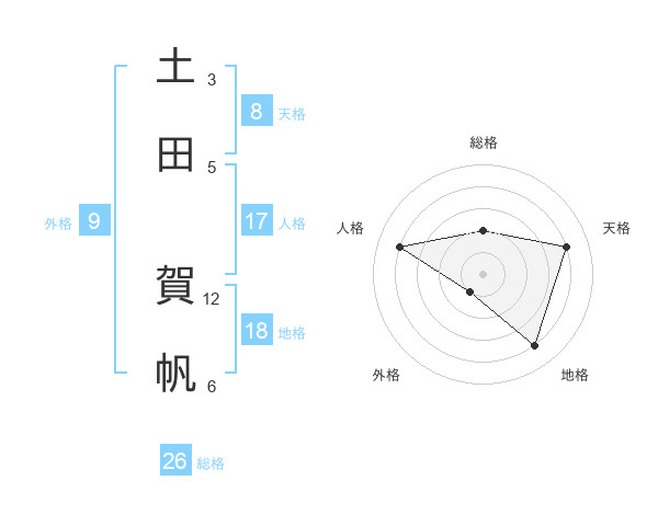 土田 賀帆さんを姓名の画数から五運を鑑定