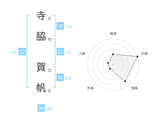寺脇 賀帆さんの天格は16画の5点!